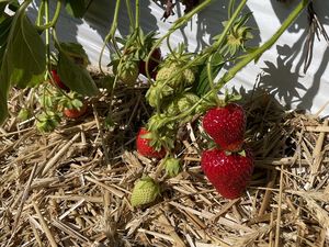 Frucht: rote bis dunkelrote, mittelgroße Früchte, mit großen Kelchblättern, sehr guter Geschmack, regentolerant